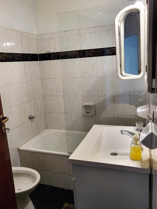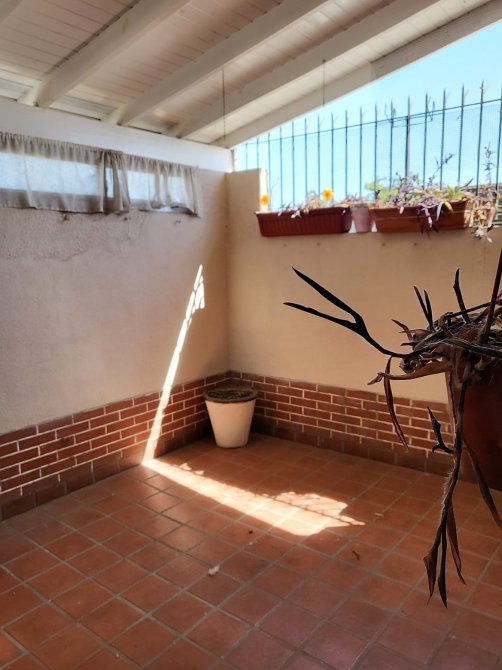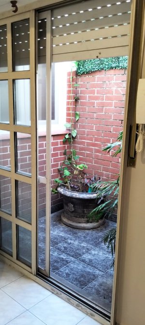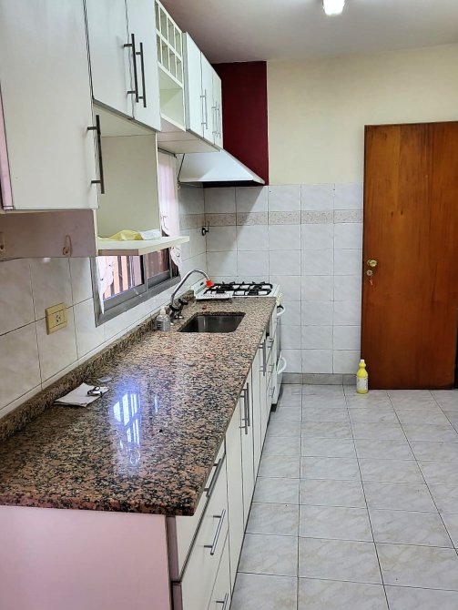IMPECABLE! Recibidor que da a un pequeño patio central con plantas, al frente amplísimo dormitorio de 5,50 x 4 todo sol, segundo dormitorio de 2x2 con placard, baño con bañera. Cocina con muebles bajo y sobre mesada comunicada con amplio patio semicubierto, súper luminoso. PRIMER PISO por escalera.