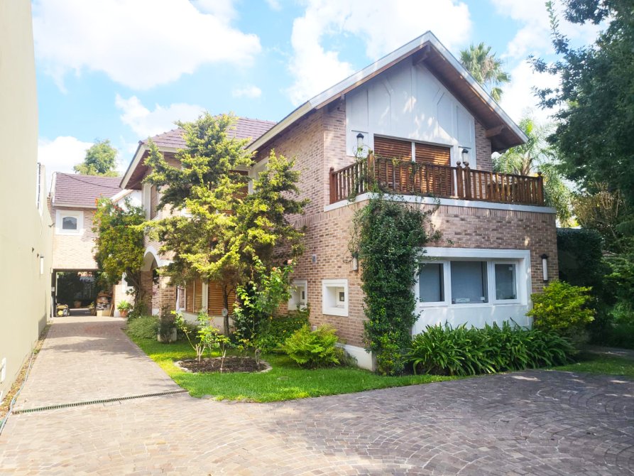 En excelente zona importante chalet en dos plantas apto vivienda familiar o fin comercial: geriátrico de primer nivel, centro de rehabilitación, centro de estética etc. Vivienda principal en dos plantas con ascensor en PB dos amplios ambientes de 7,50 x 7,50 y 11 x 5,50 ambos acompañados con galería en forma ele y vista a amplio parque, cocina y parrilla a gas, hermoso parque con pileta climatizada y parrilla. Dpto de dos ambientes con vista al parque, cochera para varios autos. PA cinco dormitorios, el principal en suite con vestidor y estudio de 4 x 5, play-room de 7 x 4, balcón. Total 5 baños , 5/7 dormitorios. 420 m2 cub. y terreno de1600 m. Aire frio calor central y equipos individuales. Construida por el arq. Papasaragas.