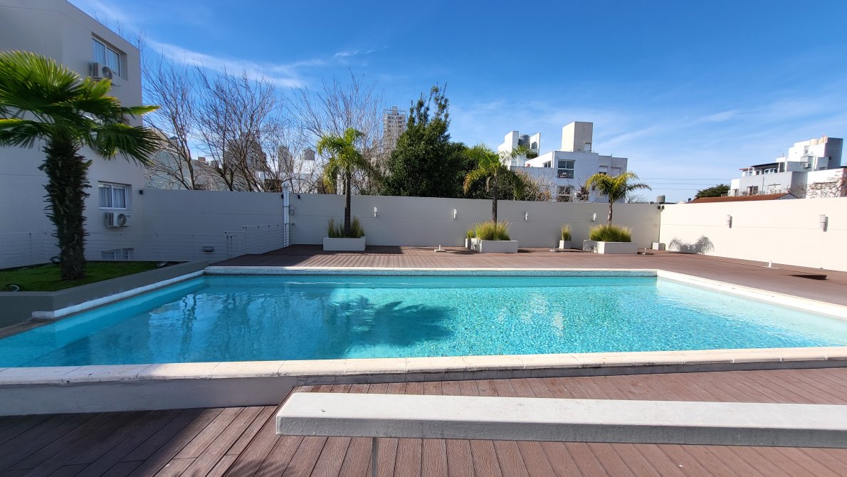 Amplio living comedor con salida a generoso balcon, cocina semi integrada con muebles bajo y sobre mesada, impecabe, dormitorio con placard con interiores, baño completo con espejo y apliques de luz. Cochera con entrada por Colombres super comoda. Caldera dual con radiadores en todos los ambientes, Aire acondicionado (frio) en living y dormitorio, Todas las ventanas con cortinas rooler. El complejo cuenta con dos piscina y amplio SUM. Seguridad las 24hs. NO acepta mascotas.