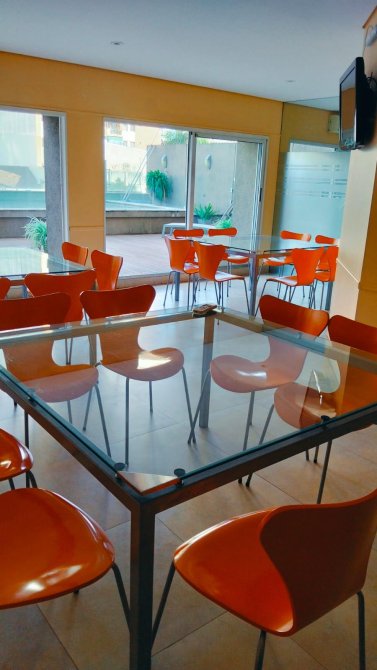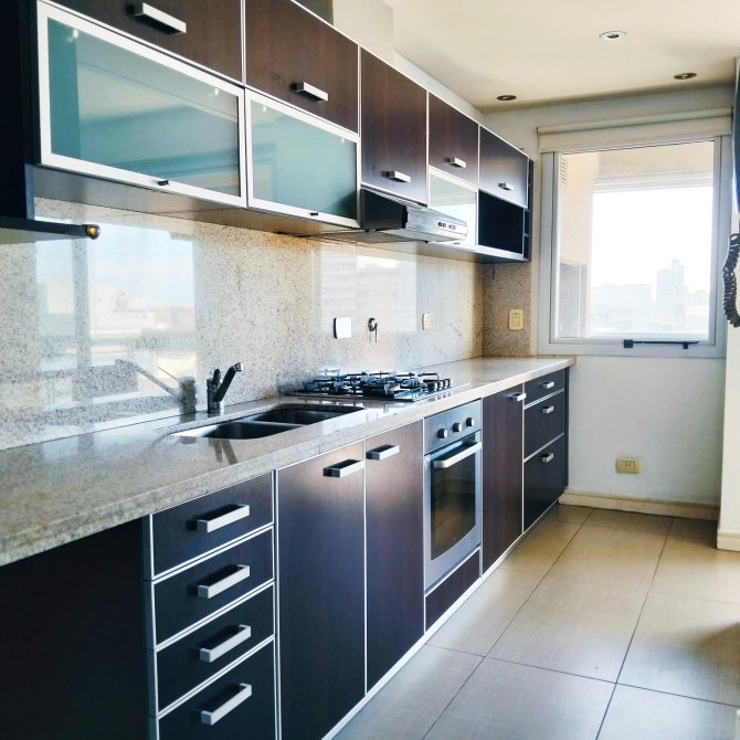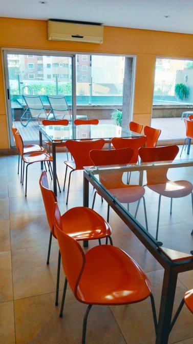 Impecable departamento ubicado en Las Lomitas. Amplio y luminoso living comedor con AA, cocina integrada con extensa mesada, muebles sobre y bajo mesada, hermoso balcón con vista abierta, parrilla y protección completa de blindex. Toillette, lavadero, baño completo con bañera y duchador. Dos dormitorios con mucha luminosidad, AAs y placards, ambos con ´persiana. Cochera cubierta. El edificio cuenta con SUM, pileta y gimnasio en el primer piso. Excelente . No acepta mascotas.