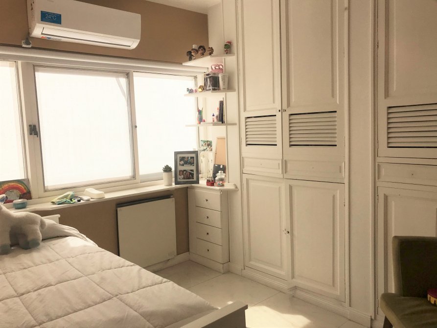 Consta de: living-comedor con palier privado, amplio balcón al frente, comedor diario independiente con balcón corrido con el living, cocina con muebles bajo y sobre mesada, entrada de servicio, lavadero. Cuatro dormitorios con placard, el principal con vestidor y en suite.