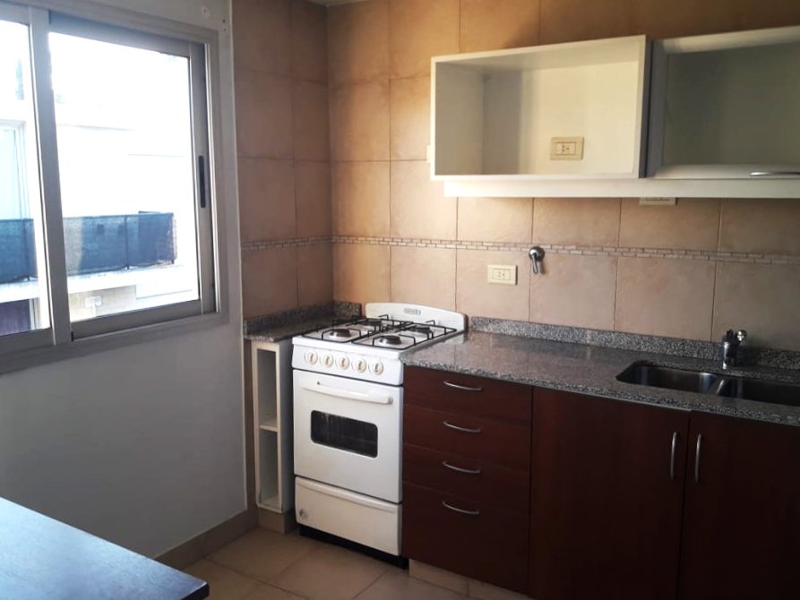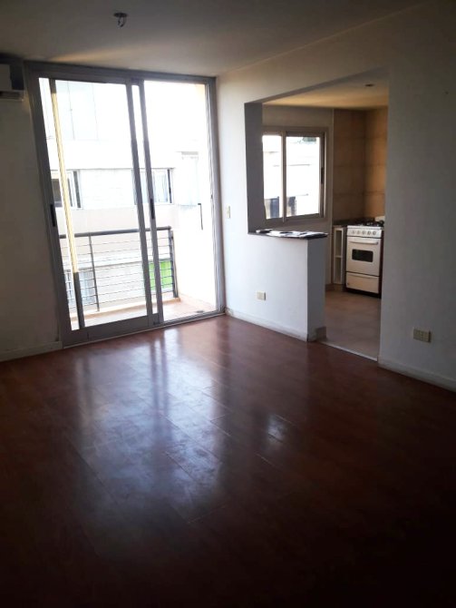 Amplio y luminoso departamento en contrafrente. Edificio de 8 años, living con piso flotante, AA y balcón, cocina semi intregrada muy bien instalada con desayunador, 1 dormitorio con placard de pared a pared y AA, baño completo.