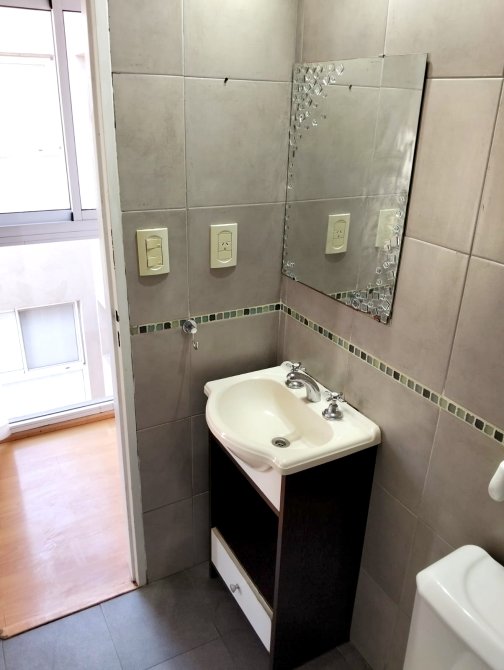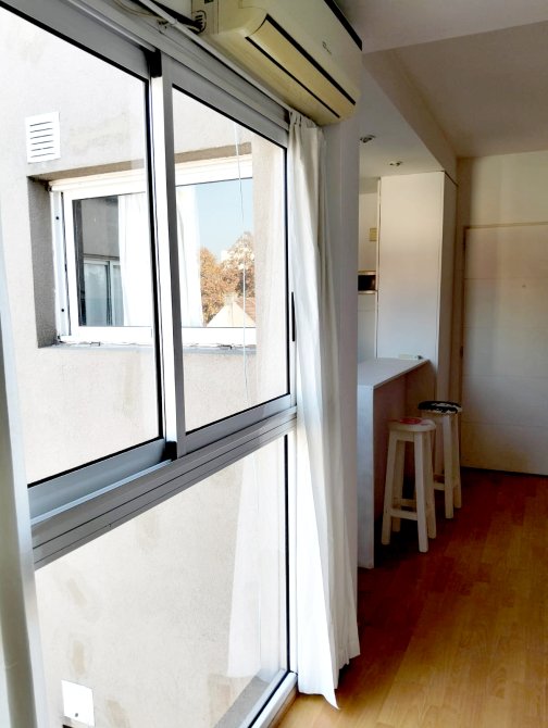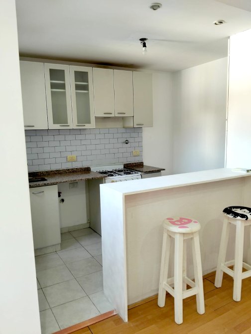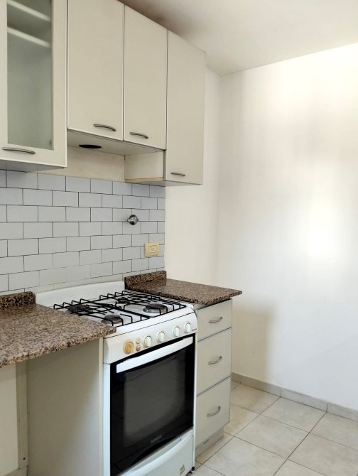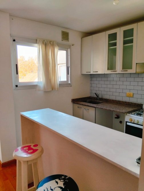 Excelente departamento, en inmejorable ubicación y súper luminoso. Living con cocina integrada con desayunador, muebles bajo y sobre mesada y espacio para lavarropas, un dormitorio con placard, baño completo con bañera, piso flotante en living y dormitorio y cerámico en baño y cocina. En planta baja el edificio cuenta con un espacio verde común. PUEDE PERMUTAR POR DPTO EN LA COSTA.