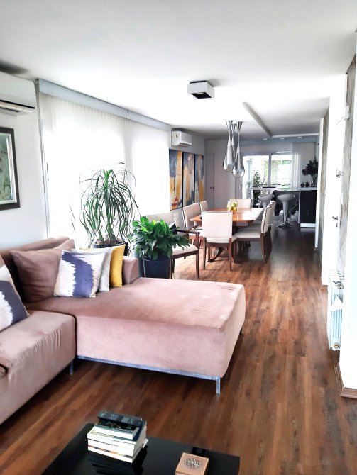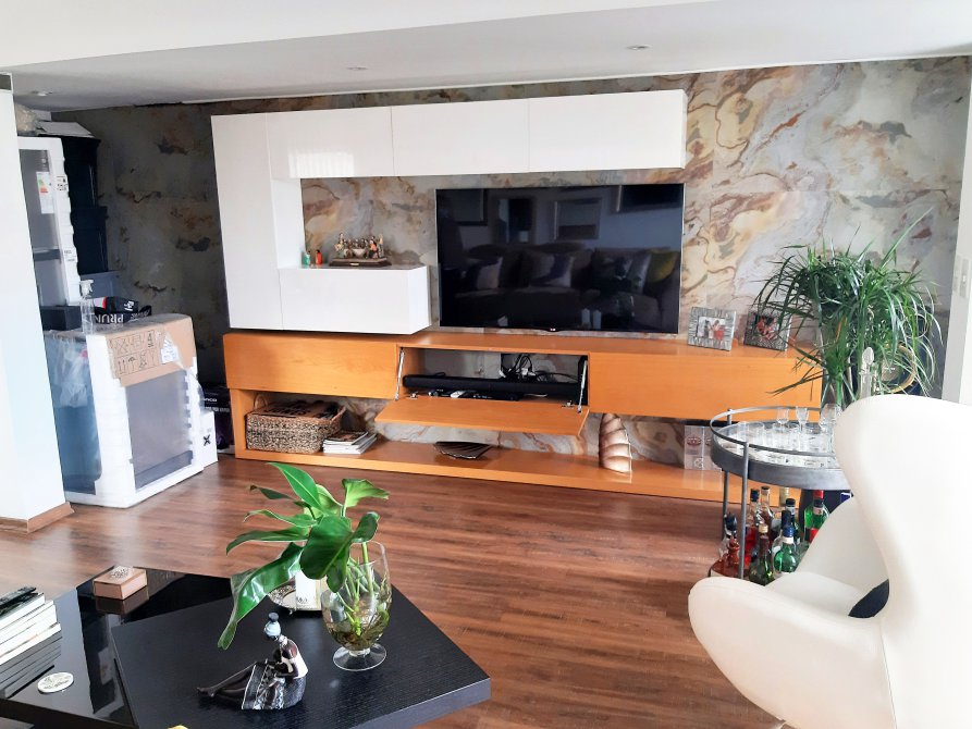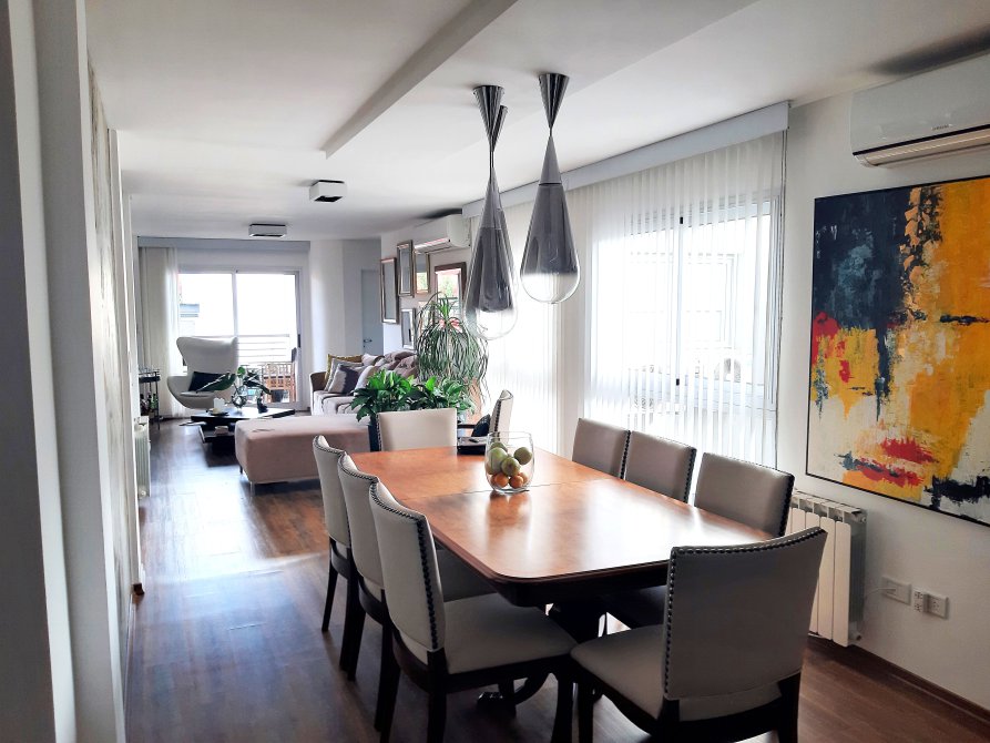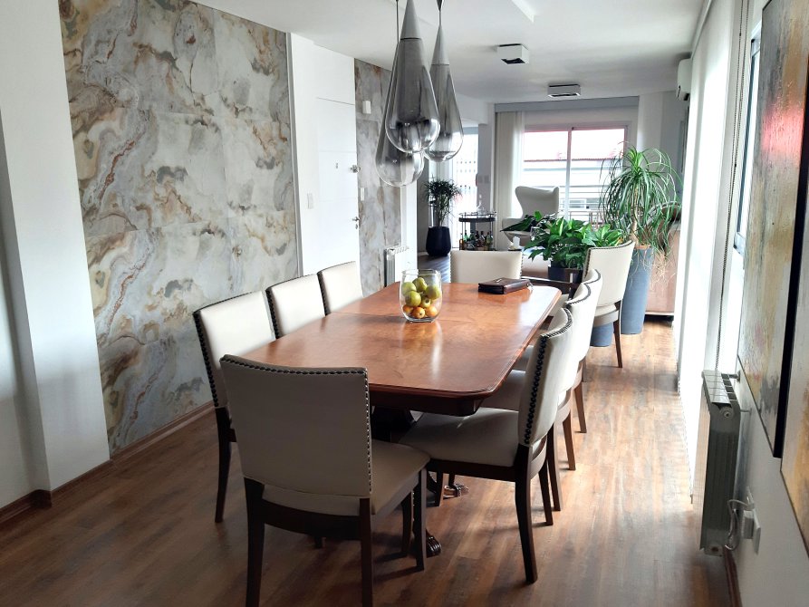 Amplio living comedor con dos balcones, cocina con muebles bajo y sobre mesada laqueados con borde de aluminio, cuarto de lavado independiente, 3 dormitorios, 2 con placards, el principal en suitte con vestidor, 2 baños completos y 2 toilette. Todos los pisos tipo flotante con base de PVC de alta resistencia, cerramientos de aluminio con cortinas de banda vertical y cenefas que cubren los rieles dando una inmejorable terminación. Habitación principal con respaldar con luz de lectura incorporada y gran espejo. Todas las conexiones de televisión embutidas, 6 equipos de aire acondicionado, se entrega con todas las luminarias y cortinas. El edificio cuenta con vigilancia permanente, cámaras de seguridad, espacios comunes con tres piscinas, gimnasio y amplio SUM con parrilla. Puede tomar Dpto en parte de pago, posibilidad de financiación.