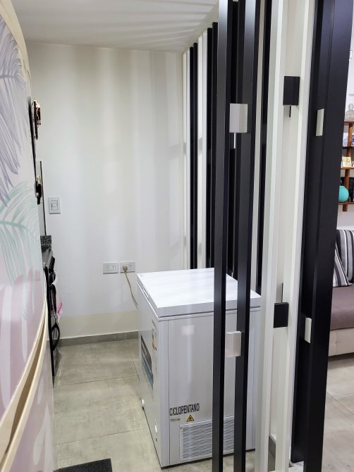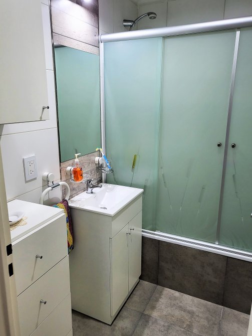 Puerta de ingreso a la unidad semi-blindada; cocina amueblada con bajo y sobre mesada, agradable división de ambientes que le deja una cierta privacidad con el comedor, pisos de porcelanato, ventana balcón en blindex que comunica al espacio libre al frente; amplio dormitorio con pisos flotantes y placard con interiores. Baño totalmente instalado con vanitory y bañera con delicada mampara , grifería FV y sanitarios Ferrum/Roca. La unidad se entrega con dos AA, estufa, cortinas Roler, mampara en baño, termo eléctrico, cocina a gas, todo en estado impecable. Puede permutar por inmueble en El Bolsón o zona cercana. CONSÚLTENOS. En comun con Inmob. Sierra.