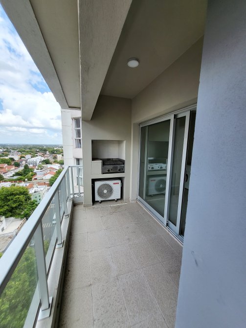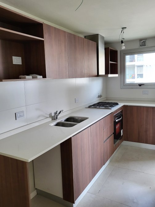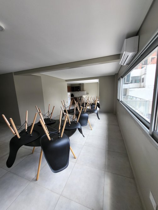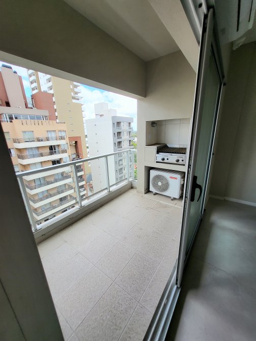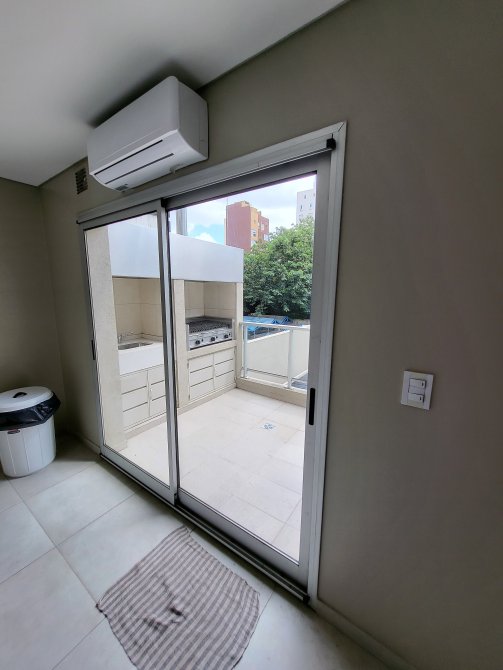 HERMOSO Dpto piso alto al frente, ventilación cruzada, living con salida a amplio balcón con parrilla a gas, cocina integrada muy completa con barra desayunadora, toilette de recepción, dormitorio en suite con amplio placard con interiores. todos los ambientes súper luminosos, dos equipos de aire acondicionado, agua caliente central. El edificio cuenta com amplio SUM con parrilla y gimnasio.