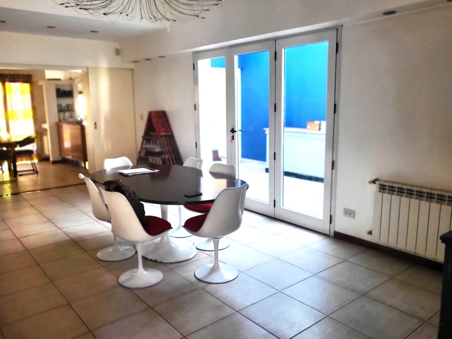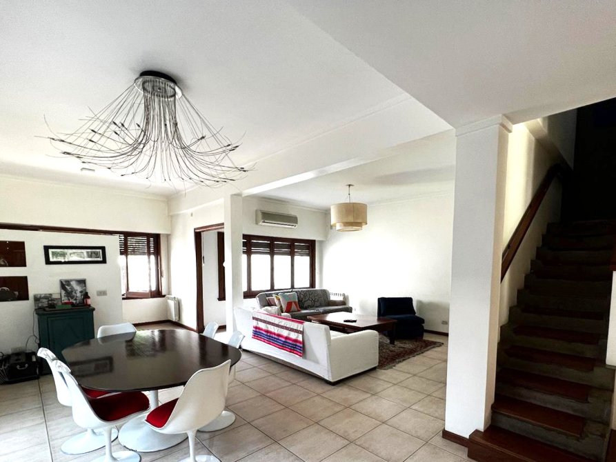 Hermoso chalet en dos plantas, sobre lote de 10 x 40,7 mts. Retiro de frente con espacio para dos autos, amplio living comedor con jardín de invierno integrado, amplia cocina comedor con muebles bajo y sobre mesada, cocina del tipo industrial con campana en acero inoxidable, mesada de granito de primera calidad, galería semicubierta, lavadero y cuarto de enceres. Amplio parque con pileta y espacio de parrilla abierta. En PA: dormitorio principal en suitte con vestidor, también se puede acceder desde el fondo, dos dormitorios con vestidor y hermoso baño principal. Todo en excelente estado. Calefacción por caldera dual.