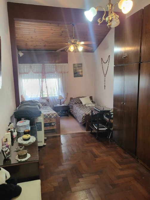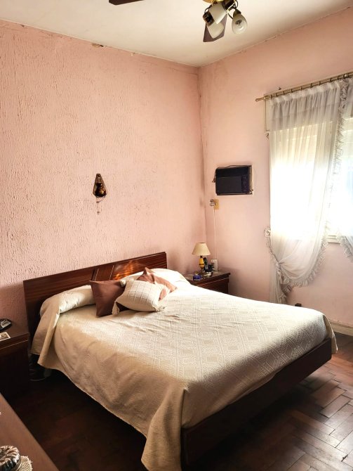 En excelente barrio, sobre lote de 8.66 x 46, chalet, al frente reja perimetral, jardin, cochera y pasillo lateral. Living comedor con ventana al frente y al pasillo, 2 amplios dormitorios con placar, cocina comedor con muebles bajo y sobre mesada, baño con mampara. Contiguo a la cocina tercer dormitorio con baño. Amplio fondo con quincho y cuarto de plancado, parrilla. EXCELENTE LUMINOSIDAD. Orientacion oeste. MUY BUEN ESTADO. Venta directa. En comun con inmob Raul Candel.