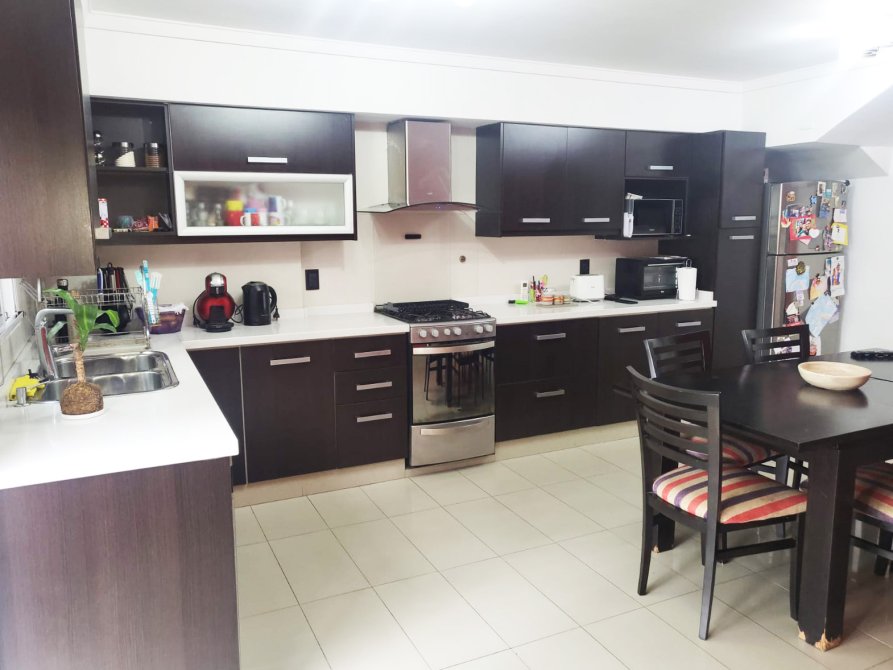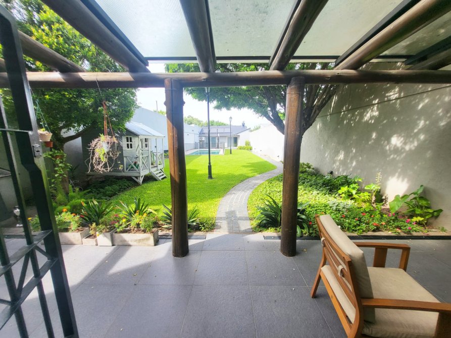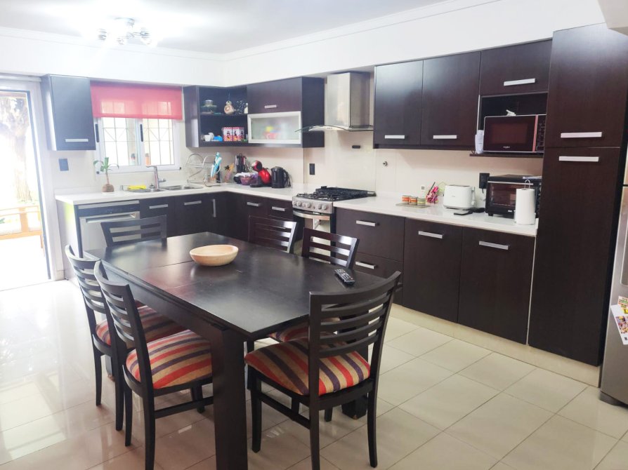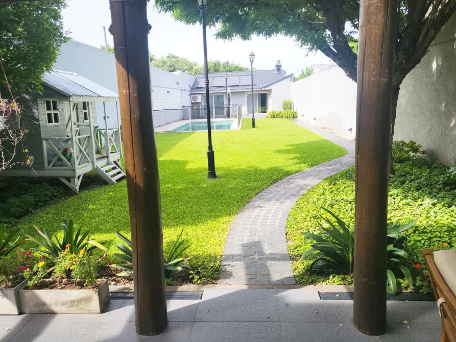PB: amplio living, toilette de recepción, cocina comedor con muebles bajo y sobre mesada de excelente calidad, comunicación a lavadero y muy prolijo gge para dos autos. Amplio parque con pileta con climatización solar, quincho con parrilla, baño y cuarto de enceres.
