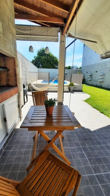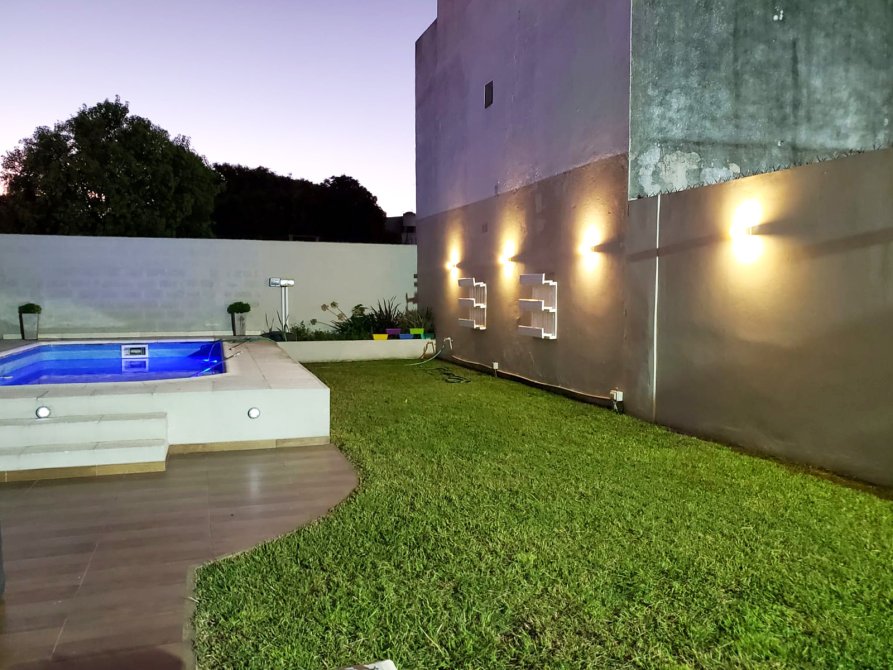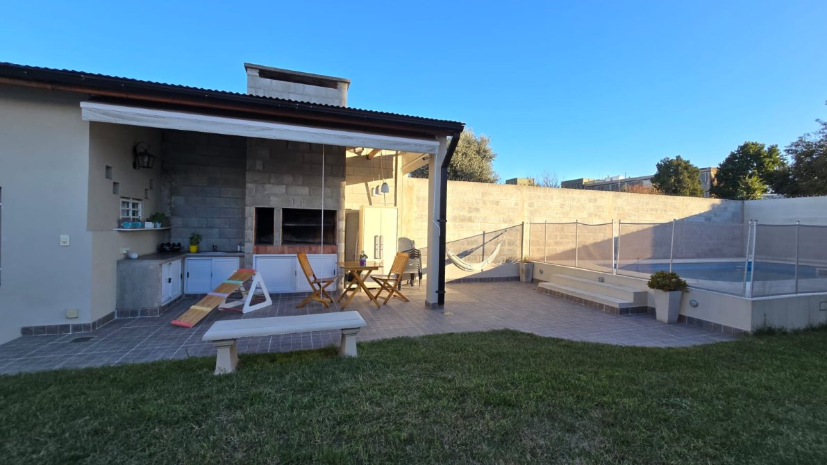 Hermoso parque con quincho semicubierto con mesada y bacha, toldo extensible y construido con materiales de origen italiano, parrilla. Amplia pileta de 7x3 mts con filtros y cerco de seguridad. Lavadero cubierto. Entrada auxiliar lateral. Todas las aberturas DVH. Pisos de cocina porcelanato importado. Pisos del patio antideslizantes. 3 equipos de aire acondicionado inverter de ultima generación Todos los ambientes impecables y con excelente luminosidad.