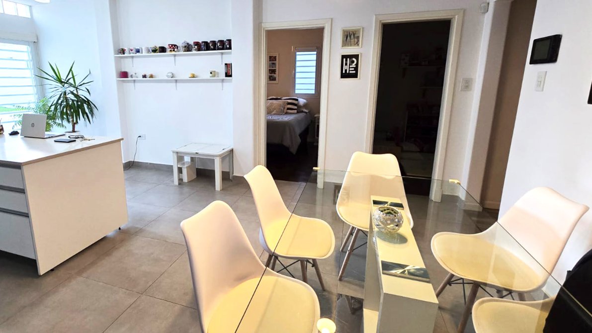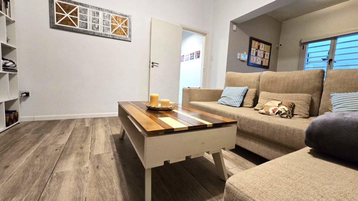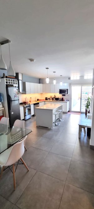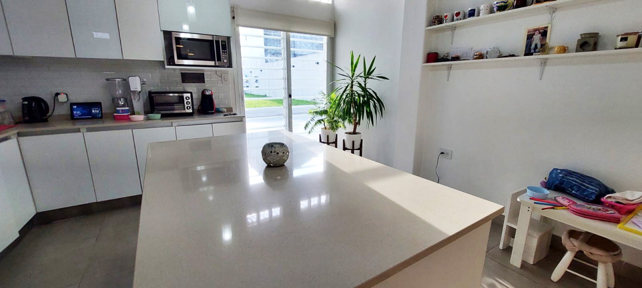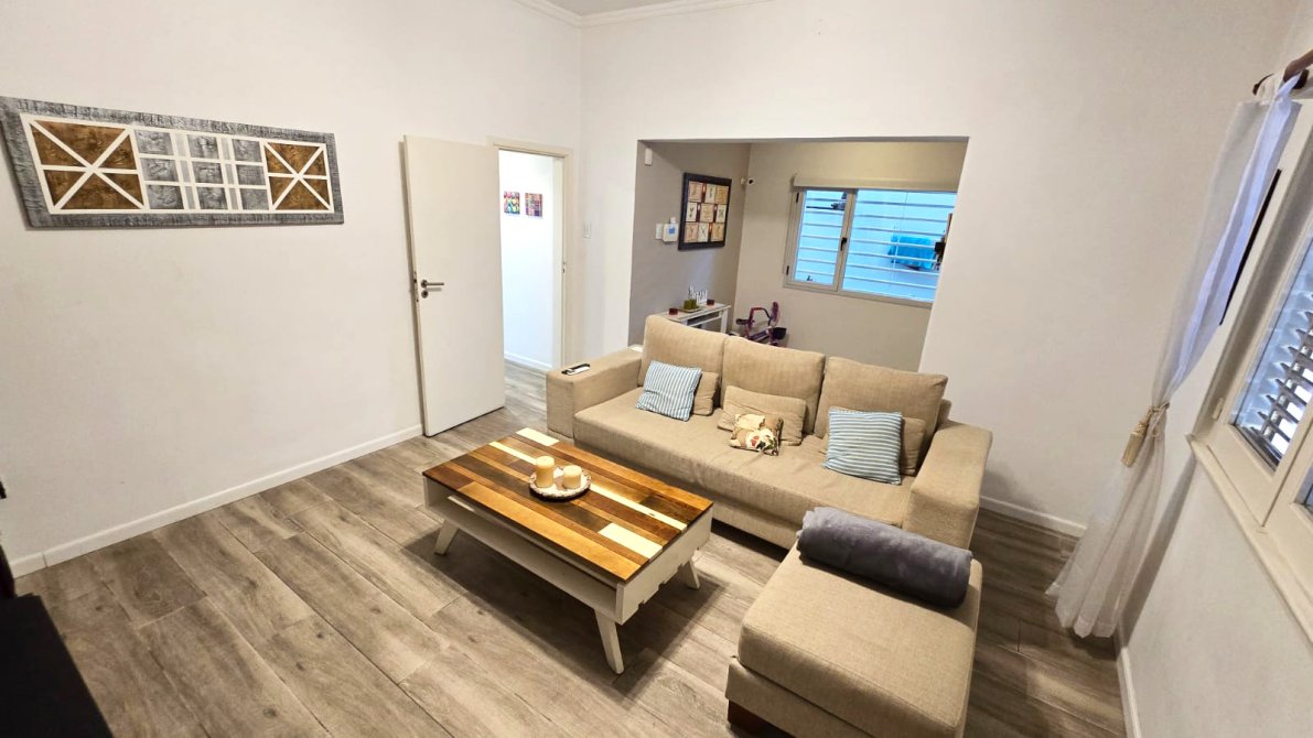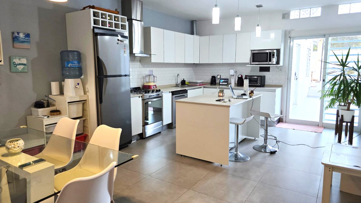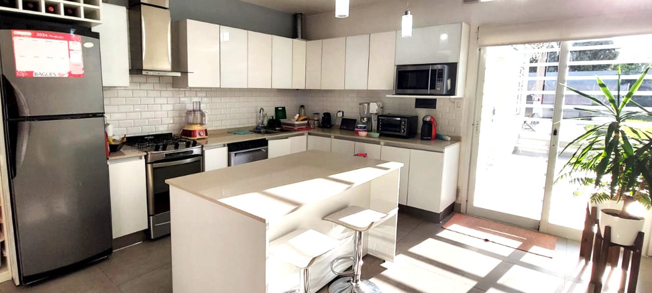 Luminoso y amplio living, por pasillo se accede a la cocina comedor que cuenta con muebles bajo y sobre mesada (silestone)y una isla súper práctica. Ventanales al jardín, lo que permite gran ingreso de luz natural. Dos dormitorios, el principal con vestidor, ambos con piso de parquet hidrolaqueado. Baño completo con delicada terminación. En el exterior y próximo a la cocina se encuentra un tercer dormitorio u oficina y un segundo baño.