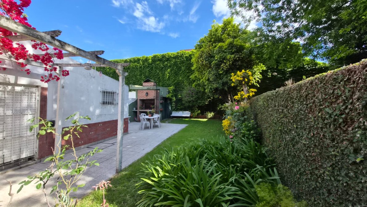 Sobre lote de 8,66 x 37 orientación norte, IMPECABLE chalet clásico, al frente jardín y entrada de coche pasante para varios autos, amplio living comedor con toilete de recepción, dos dormitorios amplios, el principal con vestidor, baño completo, cocina con muebles bajo y sobre mesada hermoso comedor diario con vista al parque. Atrás a refaccionar posible dpto. Parque con parrilla. Todos los ambientes con excelente luminosidad. Posibilidad de tomar dpto de 3 amb en parte de pago. Consultenos.
