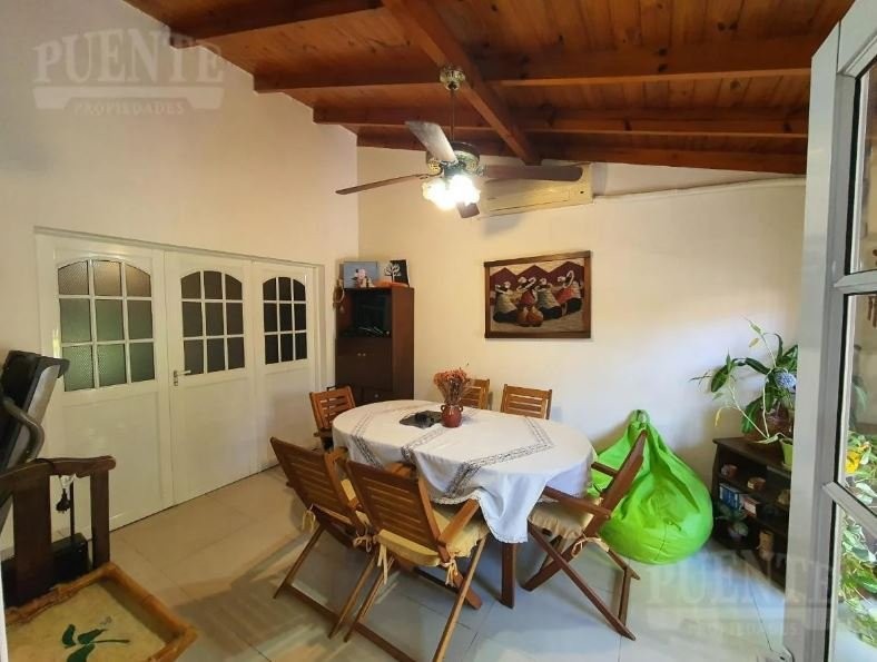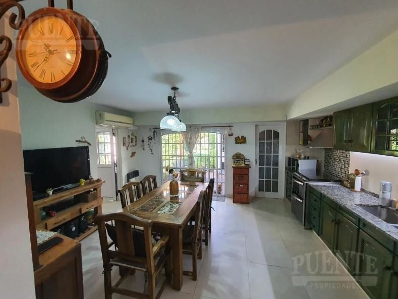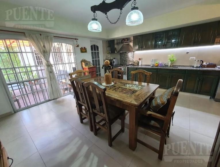 Propiedad con jardín c/rejas al frente, entrada para un auto y garage para 2 (posible pasante). Hall de recepción, living en desnivel c/estufa de TB, comedor c/estufa de leños a gas, hall distribuidor, toilette de recepción, amplia cocina comedor diario c/muebles bajo y sobre mesada, estufa y equipo de AA, lavadero independiente, ambiente amplio tipo estar diario (quincho) c/salamandra a gas, patio, parque y quincho c/parrilla y cocina.